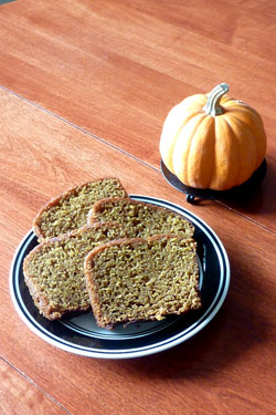 So just in case you aren’t tired of pumpkin yet (as if that’s even possible), this bread is amazing. Moist, pumpkiny, the perfect amount of spices. I’ve baked it twice this month already and I’m sure a third is not far off. It’s so good I have a hard time not eating all three loaves in one day.