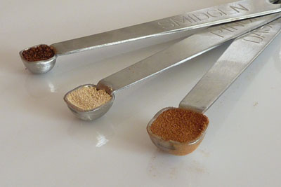 * I have this fun set of measuring spoons my mom got me for these measurements. If you don’t (honestly they’re pretty silly, but fun) just give a small shake of each from your spice jar. Just aim for more cinnamon than ginger, more ginger than cloves, and not very much of each. Having precise measurements is not really important.