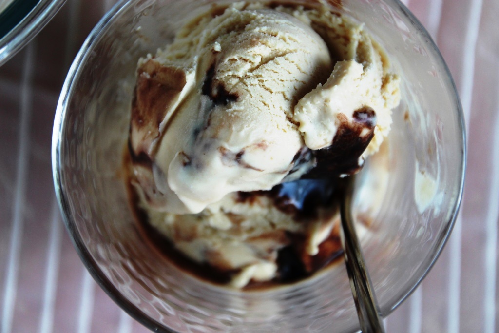 My first attempt had way too much peanut butter (like that’s even a thing) and ended up more like extra fluffy peanut butter than an ice cream. I toned it down for my second attempt and in addition to not freezing hard as a rock, it’s definitely ice cream. Smooth and very peanut buttery, the chocolate ripple breaks up the thickness of the flavor. I’d never tried a ripple before, but it turned out to be very easy. If a mix-in isn’t really your style, just top it with your favorite chocolate sauce or keep it plain; it is certainly delicious all on its own.