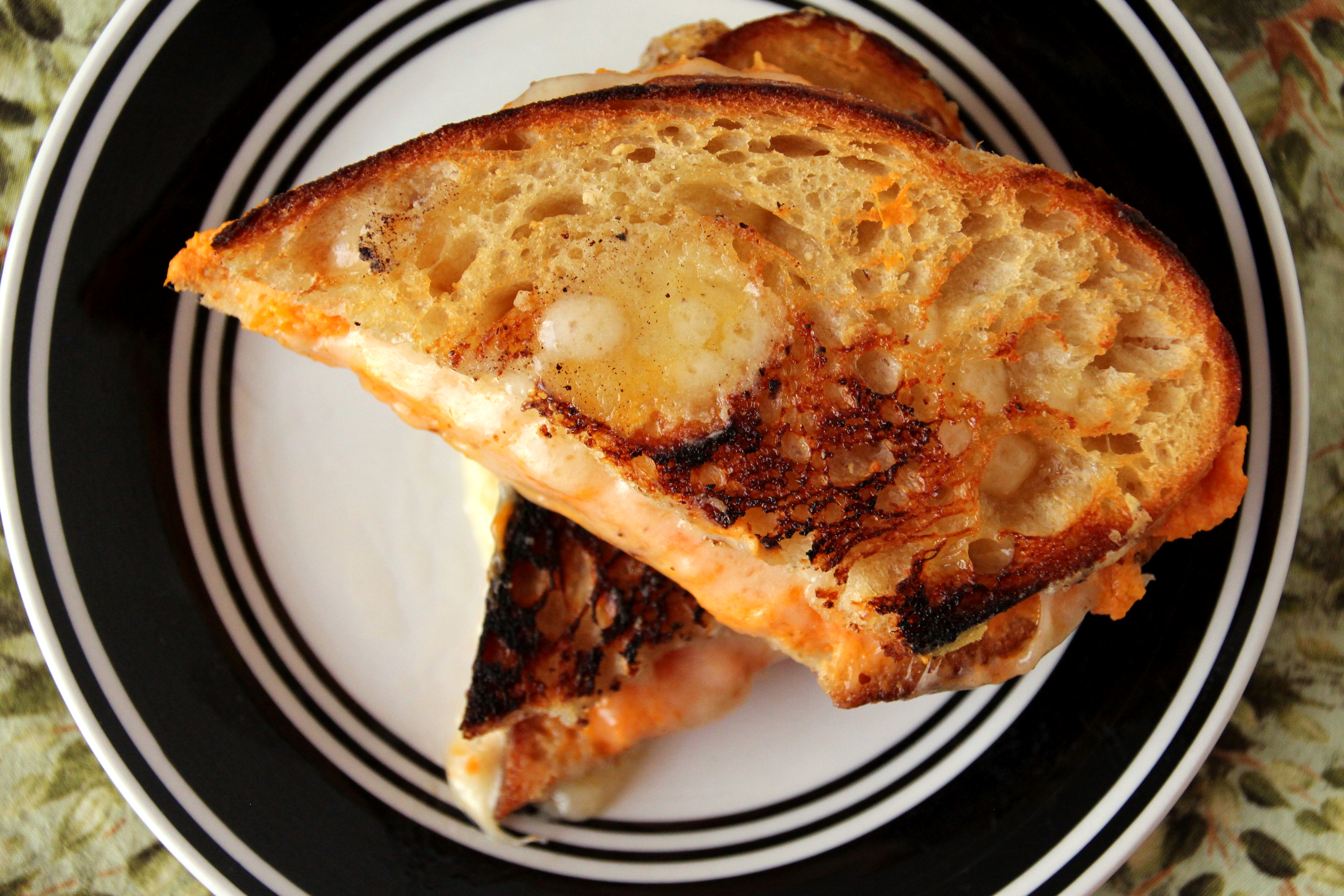 In my version I upped the flavor complexity a bit by mashing my sweet potato with goat cheese and a little chipotle, and then layered it with sliced Gruyère. I opted for sourdough bread from a local bakery but I think a seeded multigrain would also be excellent, as well as a fluffy potato bread. Whatever you decide to envelope your cheese delight with, I’m sure you’ll be thrilled with the outcome.