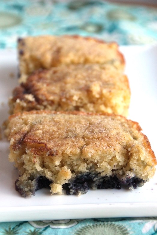 Still here? Excellent. Rich and buttery, fluffy and moist, brimming with blueberries, and topped with a cinnamon & sugar coating I always adore, it’s hard to have just one piece. After making it again, I’m honestly not sure why I waited so long and it will definitely be put in a more regular baking rotation. It pairs equally well with a cup of coffee for breakfast or snack, and a glass of milk for dessert. Or a handful straight from the cooling rack to your mouth because you “accidentally” didn’t grease the pan well enough and had to hide the evidence.