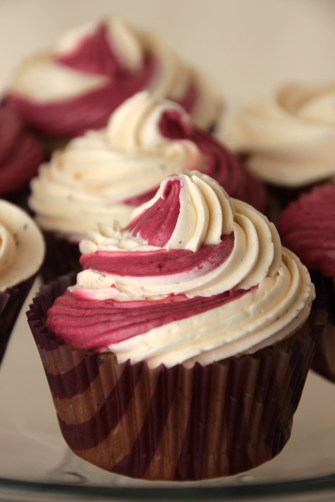 Moist and light, these cupcakes are packed with blueberries and accented with lemon and thyme for a slight twist on a classic. They are not exorbitantly sweet which means even with the buttercream frosting it’s a reasonable sugar high. (Still plenty sweet though, it is a cupcake, after all.) The frosting is fluffy and bright with a little thyme flavor, and a few specks of the herb throughout. I opted for some simple rose swirls to keep it a relatively light amount of frosting, and to bring an edible bouquet to my kitchen.