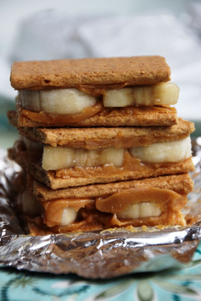 Sliced bananas spaced with peanut butter, frozen, and dipped with a thin layer of chocolate, they are sweet and satisfying without having the high sugar and calorie contents of more traditional desserts. The stick makes them great for kids and fun for adults, as well as easy to serve at potlucks and barbecues. Stored in a cooler they should be just fine for a few hours during your outside gatherings even during hot weather.