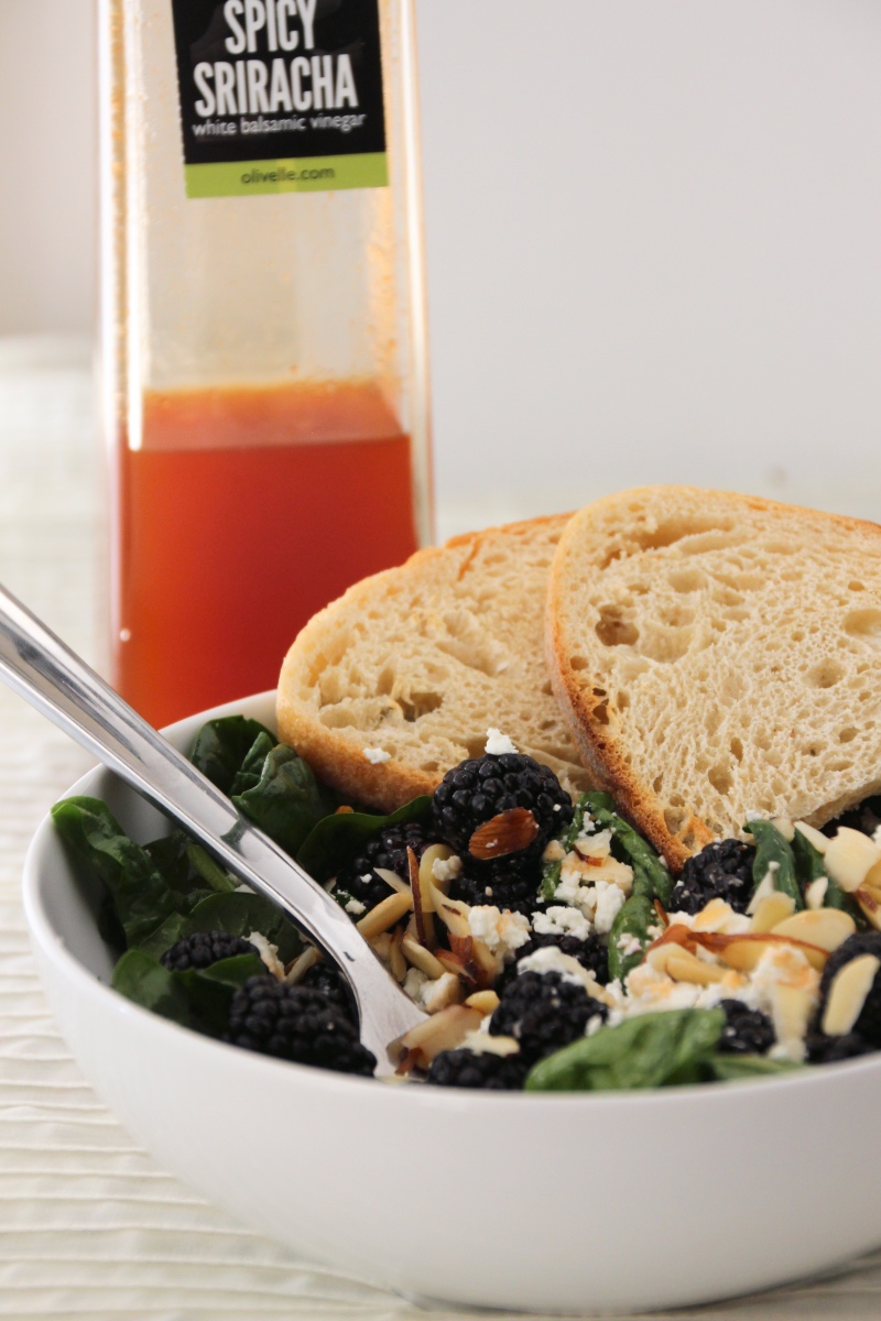 Lastly, a good quality balsamic vinegar is key here. I personally rarely use legitimate salad dressings and just dress mine with one of my large collection of Olivelle balsamic vinegars. Crisp Anjou Pear Balsamic Vinegar is my favorite for this particular salad, but a plain barrel-aged balsamic, anything with rosemary, or your favorite more neutral vinaigrette would also do nicely. I do recommend using a more viscous vinegar or a reduction to allow for a better coating.