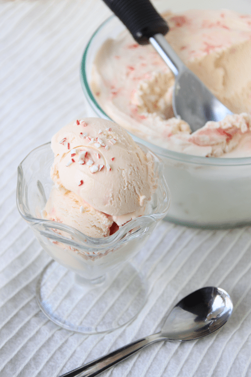Creamy, cold, and chalk full of a favorite winter flavor, this ice cream is delightful on its own or an excellent match for a gooey chocolate brownie. Top it with a sprinkle of candy for extra flair.