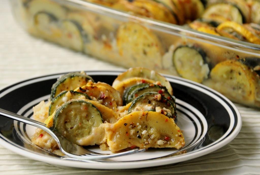 - To serve: layer the zucchini in a large serving dish, then top with remaining veggies. Add 1/2 cup dressing and toss until well coated. Taste and toss with additional dressing if you prefer a more generous coating.